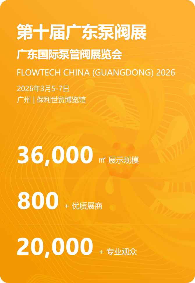 由上海荷瑞展覽有限公司、Informa Markets聯合主辦,上海荷祥會展有限公司協辦的第十屆廣東國際泵管閥展覽會(簡稱:廣東泵閥展)作為華南泵閥產業首選商貿平臺,攜手廣東水展于2026年3月5-7日在廣州保利世貿博覽館再度啟幕!