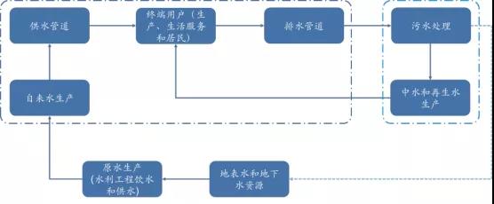 水務行業屬于市政公共服務的一部分,是支撐社會進步和經濟發展的重要基礎性行業。近年來隨著城市化進程的加快,水務行業重要性日益提升。從產業鏈角度來看,水務行業包括原水取水、自來水生產、供水管道、終端用戶的二次供水、排水、污水處理和再生水等環節。水務公司作為產業鏈中最主要的參與者,通常涉及水務行業全產業鏈環節,下設多個子公司分管水務行業不同業務,如水資源公司(原水供應)、自來水公司(城市供水管網、終端供水)、排水公司和污水處理公司等。隨著特許經營制度的引入,水務企業逐步開始市場化改革,實現政企分離和自負盈虧式的一體化運營。