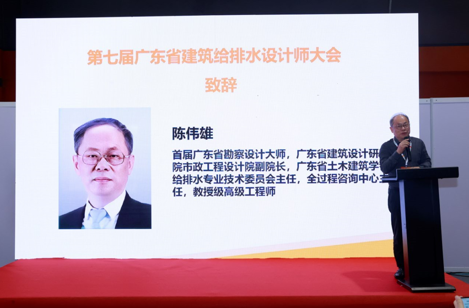 廣東省土木建筑學會給排水專業技術委員會主任,首屆廣東省勘察設計大師陳偉雄先生代表上級學會致辭!向蒞臨此次大會的各位嘉賓和朋友表示最熱烈的歡迎!