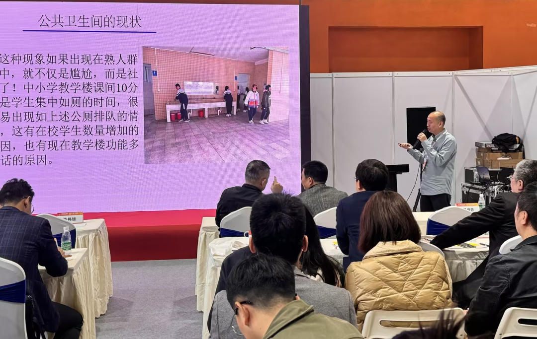 廣東華方工程設計有限公司給排水總工程師、高級工程師高俊先生做了《中小學教學樓給水系數與節水探討》主題報告;
